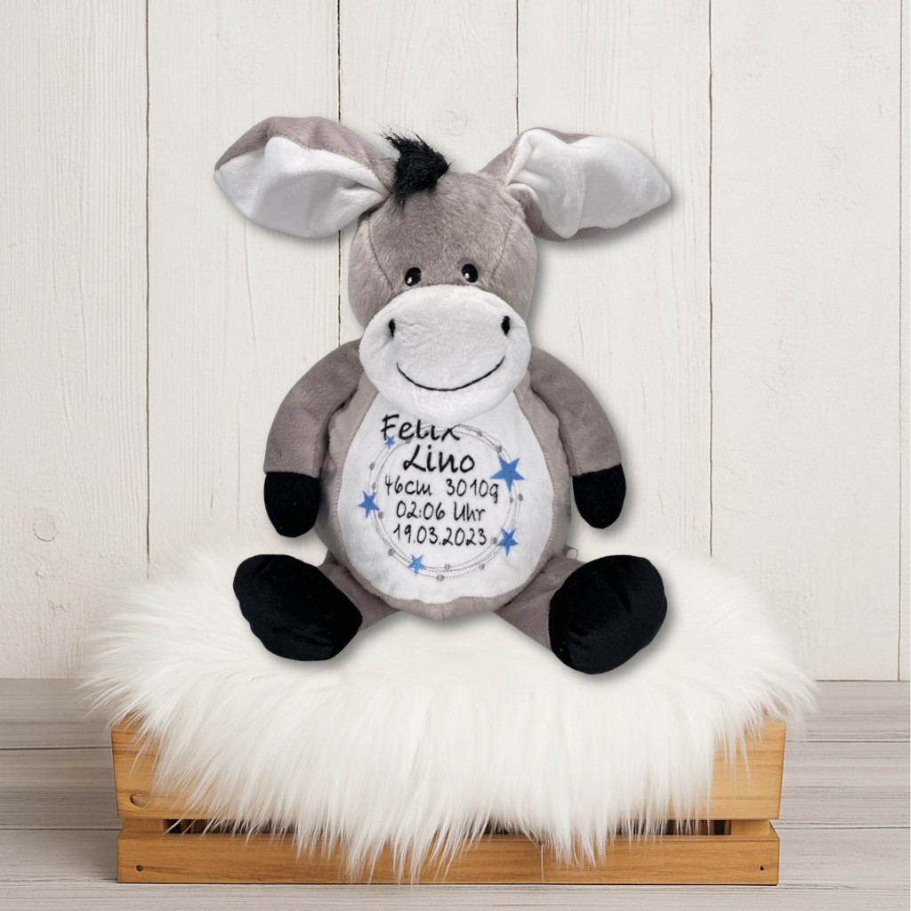 Die kuschelweichen Tiere mit dickem Bäuchlein sind perfekt zum knuddeln geeignet und werden durch die individuelle Bestickung zum echten Unikat und Erinnerungsstück.