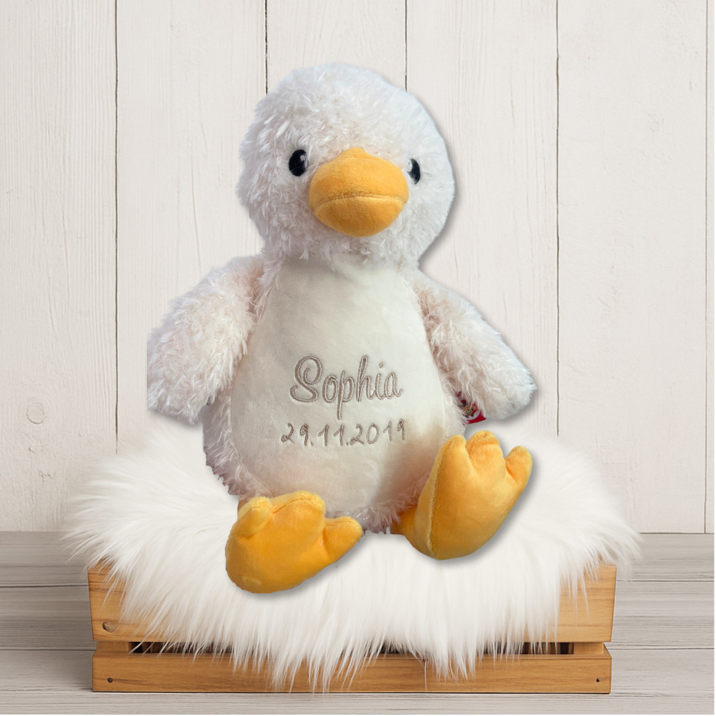 Die kuschelweichen Tiere mit dickem Bäuchlein sind perfekt zum knuddeln geeignet und werden durch die individuelle Bestickung zum echten Unikat und Erinnerungsstück.