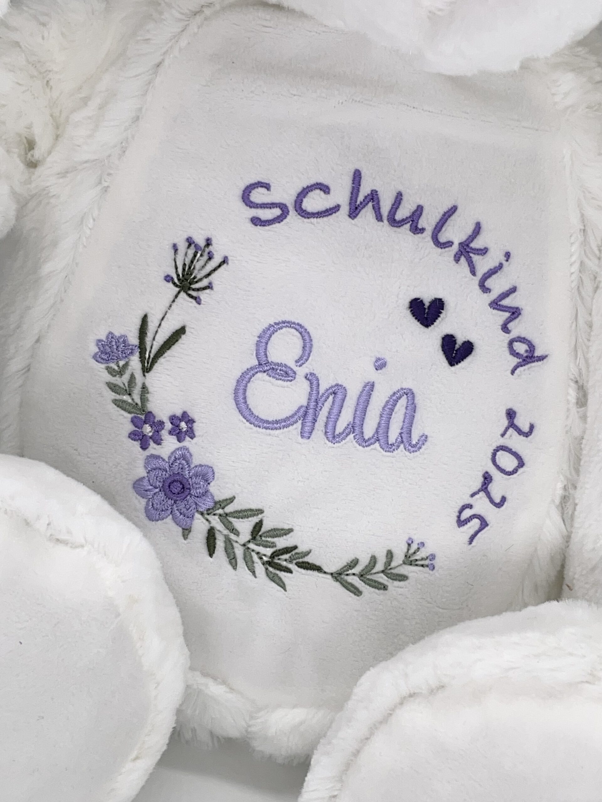Ich besticke in liebevoller Handarbeit personalisierte Kuscheltiere für Dich.